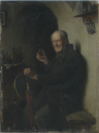 Obraz olejny na desce "Mężczyzna pijący wino" Stan zachowania: W dolnej partii deska pęknięta, zniszczone krawędzie i narożniki. Liczne ubytki w warstwie malarskiej i gruncie. Zakres prac konserwatorskich: Naprawa pęknięcia, krawędzi i narożników deski. Oczyszczenie lica, położenie warstwy wyrównującej ubytki w desce, usuniecie starych retuszy, wykonanie kitów i retuszy, |